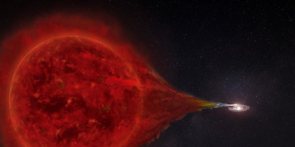Im Sternbild des Schlangenträgers ereignen sich immer wiederkehrende Novas, etwa im Abstand von 15 Jahren. Die gigantischen Explosionen im Doppelsternsystem RS Ophiuchi können entstehen, weil sich dort ein Weisser Zwerg und ein Roter Riese umkreisen. Rote Riesen sind aufgeblähte, alte Sterne, Weisse Zwerge ausgebrannte, winzige, extrem dichte Sterne. Kommen sie im Doppelpack vor, übertragen Sternwinde des Roten Riesen ihre Materie auf den Weissen Zwerg. Sobald dieser zu viel davon verschluckt hat, kommt es zu einer thermonuklearen Explosion.