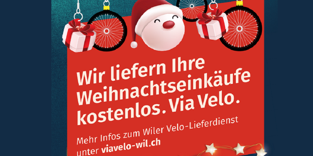 Bis zum 31. Dezember können sich Wilerinnen und Wiler auch ihre Einkäufe von Partnergeschäften kostenlos nach Hause liefern lassen. Die Weihnachtsaktion des Velo-Lieferdienstes soll dazu anregen, die Adventszeit entschleunigter zu geniessen. Von der Aktion ausgenommen sind Sonntagsverkäufe.