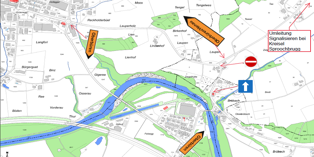 Die Arbeiten erfolgen in mehreren Etappen. Der Verkehr wird teilweise im Einbahnverkehr geführt. Verkehrsteilnehmer von Zuzwil Richtung Oberbüren werden in Zuzwil über Henau umgeleitet. Der übrige Verkehr von und nach Niederhelfenschwil wie auch nach Zuzwil wird einspurig geführt und mit einer Lichtsignalanlage geregelt. Zur Veranschaulichung der Verkehrsführung finden Sie in der Beilage eine Übersicht dazu.