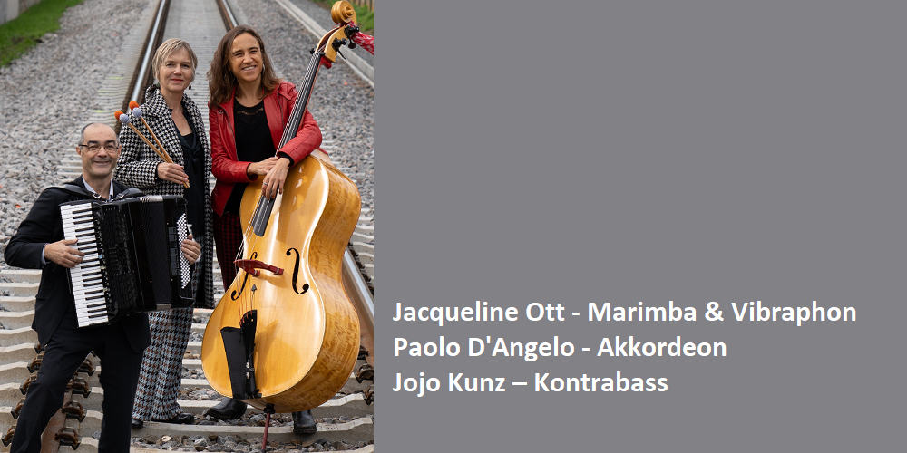 Im kleinsten Orchester der Welt, wie es von einem Journalisten einmal benannt wurde, spielen Jojo Kunz mit ihrem groovigen Kontrabass, Paolo d’Angelo mit seinem singenden Akkordeon und Jacqueline Ott mit ihren Zaubereien auf Vibrafon und Marimba.