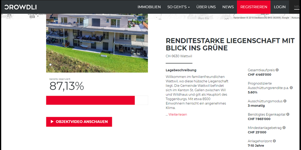 Wollen Sie Miteigentümer einer Liegenschaft in Wattwil werden? Noch haben Sie ein paar Tage Zeit und ab 25'000 Franken sind Sie dabei. Ausgeschrieben ist dieses Angebot auf einer der immer beliebter werdenden Crowdfunding-Plattformen namens CROWDLI.