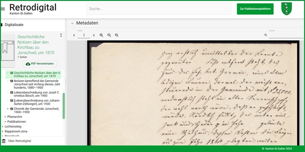 Die Plattform «Retrodigital» beschränkt sich derzeit noch auf vier Pilotgemeinden (Jonschwil, Lichtensteig, Rapperswil-Jona und Rorschach). Die Staatskanzlei möchte das Angebot mit weiteren St.Galler Gemeinden ausweiten. Dank der einheitlichen Plattform lassen sich Synergien nutzen, sodass nicht jede Gemeinde eine separate Plattform im Internet betreiben muss.