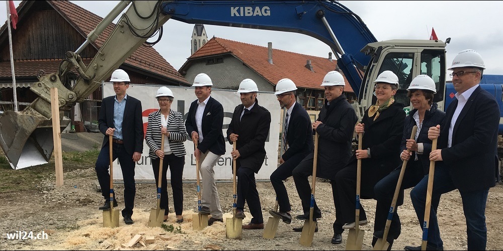 Ein grosses Projekt geht in die Umsetzungsphase. Nach einer fünfjährigen Planungszeit erfolgte am 2. Mai 2018 der Spatenstich für die Überbauung Spelteriniwiese im Zentrum von Bazenheid. Hier enstehen bis Frühjahr 2020 ein Hauptgebäude mit 72 Plegeplätzen und 9 Alterswohnungen sowie zwei Satelliten-Bauten mit insgesamt 31 zertifizierten altersgerechten Wohnungen.