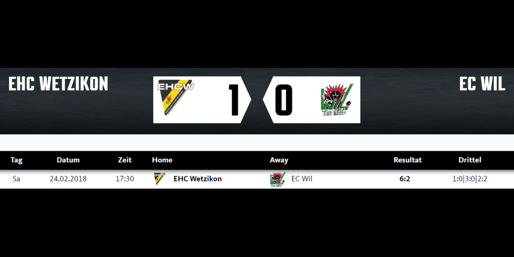 Für den EC Wil gibt es im ersten Playoff-Halbfinal-Spiel bei der 2:6-Schlappe in Wetzikon nichts zu holen. Die Entscheidung fällt im mittleren Abschnitt, als die Zürcher Oberländer vom 1:0 auf 4:0 davon zogen. Die zweite Partie folgt am kommenden Dienstag, 27. Februar 2018, im Wiler Bergholz.