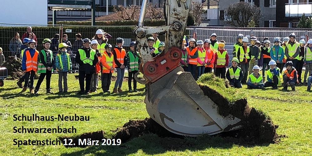 Der Spatenstich für den Schulhaus-Neubau am 12. März 2019 in Schwarzenbach entwickelte sich dank des prächtigen Frühlingswetters und des speziellen Rahmenprogramms zu einem veritablen Volksfest. Riesige Vorfreude auch bei den Jugendlichen, die grossenteils noch in den Genuss des neuen Schulhauses kommen werden.