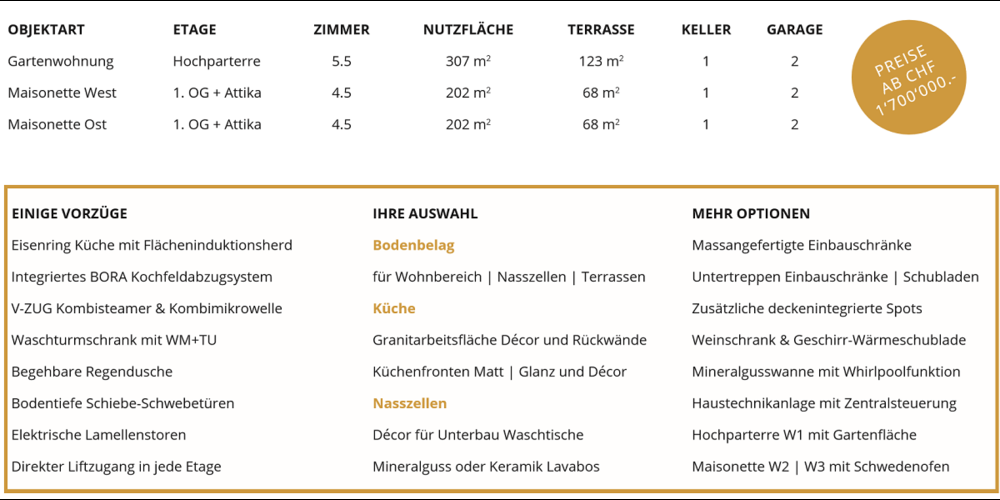 Lassen Sie Ihre Wohnträume wahr werden und sichern Sie sich eine der drei erstklassigen Neubauwohnungen an bevorzugter Lage in Wil. Gerne zeigen wir Ihnen eine Auswahl an Materialisierungen und möglichen Ausstattungs- modellen bei einer persönlichen Projektvorstellung in unserem Büro.Reservieren Sie unverbindlich einen Termin mit unserer projektverantwortlichen Ansprechpartnerin, Frau Carmen Tuosto unter der Telefonnummer +41 71 925 15 05
