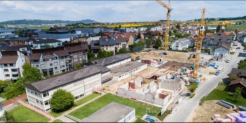 FS: Wir liegen im Zeitplan. Der Neubau des Schulhauses benötigt eine längere Bauzeit als die Mehrzweckhalle. Wir haben deshalb mit den Erdarbeiten beim Schulhaus gestartet, damit dieser Hochbau möglichst rasch hochgezogen werden kann. Parallel dazu wird mit einer zweiten Krananlage auch der Rohbau der Mehrzweckhalle erstellt.