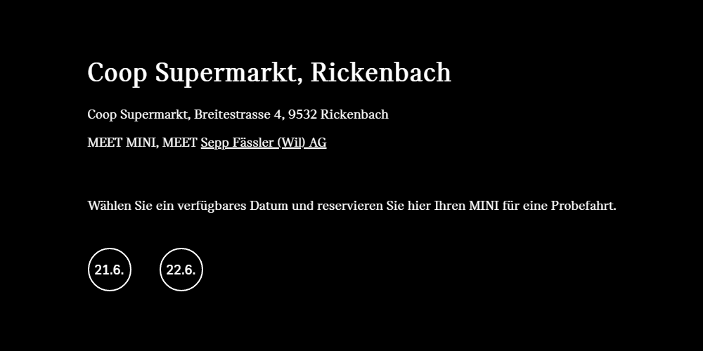 "MEET MINI @COOP-SUPERMARKT IN RICKENBACH" AM 21. UND 22. JUNI 2019