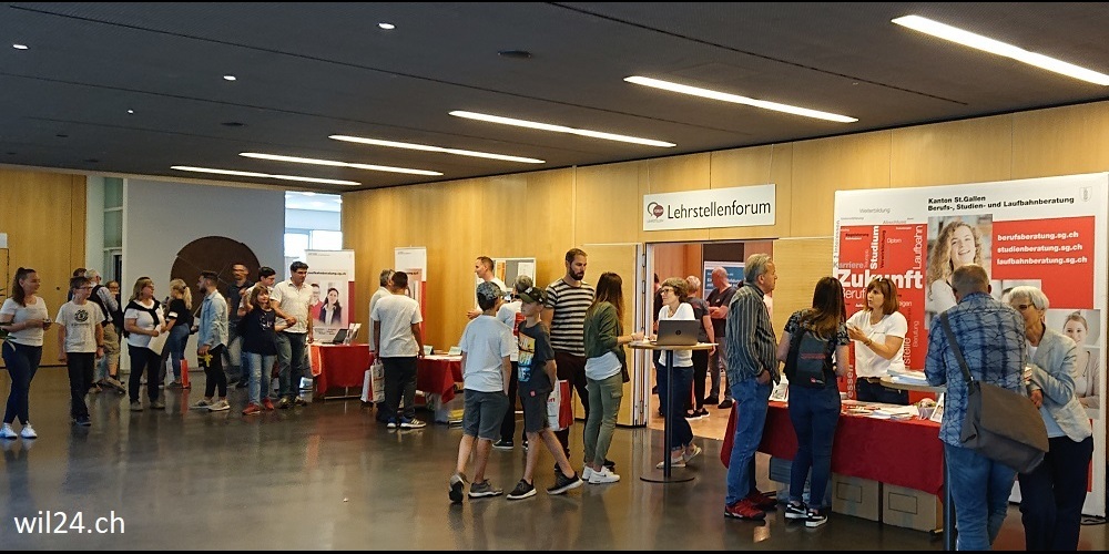 Das Lehrstellenforum Wil bot den Oberstufenschülerinnen und -schülern die alljährliche Möglichkeit rund 80 Berufe in kurzer Zeit kennen zu lernen. Diese wurden am Samstag, 22. Juni 2019, von 08:30 bis 12:00 Uhr im Stadtsaal Wil von 64 Betrieben präsentiert, ergänzt durch Infoveranstaltungen und Podiumsgespräche. Hier einige Impressionen.