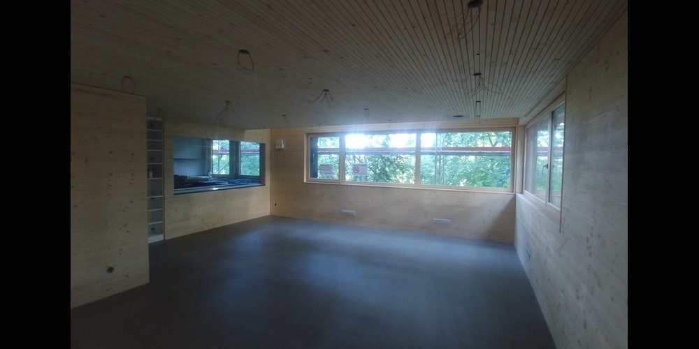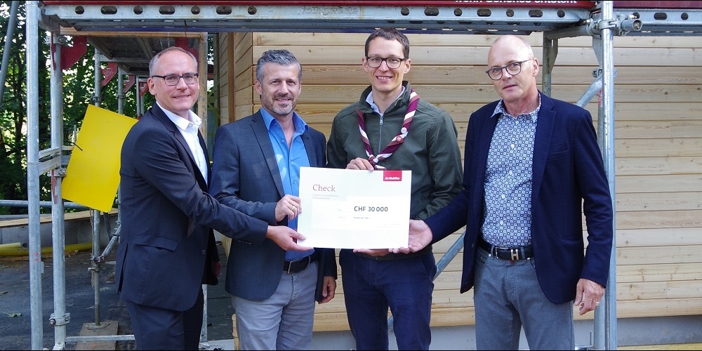 Bei der Check-Übergabe konnten Thomas Broger und Adrian Allenspach von der Generalagentur Wil bereits einen Einblick ins neue Pfadiheim gewinnen. Wie die Bilder weiter unten zeigen, hat sich auf der Baustelle schon einiges getan, das Dach ist unterdessen gedeckt und die Küche eingebaut.
