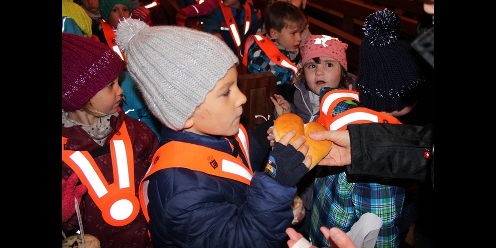 Die Teilnehmenden und die Begleitenden nahmen in der St.Martinskirche Platz. Die Kindergärtnerin Katrin Fürer, die für die Organisation verantwortlich war, begrüsste sie. Dann wurde das St.Martinslied gesungen, bevor anschliessend die Wiler Schauspielerin Bigna Körner die Martinsgeschichte erzählte. Sie ist momentan als Stellvertreterin im Kindergarten Jonschwil tätig. Die Künstlerin ist bekannt aus ihren Film-, Fernseh- und Theaterauftritten. Sie wurde 2017 mit dem Kulturpreis der Stadt Wil geehrt. Zur spannend erzählten Geschichte wurden auf einer Grossleinwand Lichtbilder gezeigt. Nach der Erzählung sangen die Kinder nochmals das St.Martinslied. Bei der Verabschiedung durch Katrin Fürer erhielten die freiwilligen Helferinnen und Helfer den verdienten Dank und die Kinder ein Brotherz, das sie nach dem Vorbild von Martin zu Hause teilen sollten. Alle Teilnehmenden konnten sich mit heissem Punsch aufwärmen. Bei der Organisation halfen auch einige Frauen und Männer der Elternmitwirkung und ältere Schüler mit.