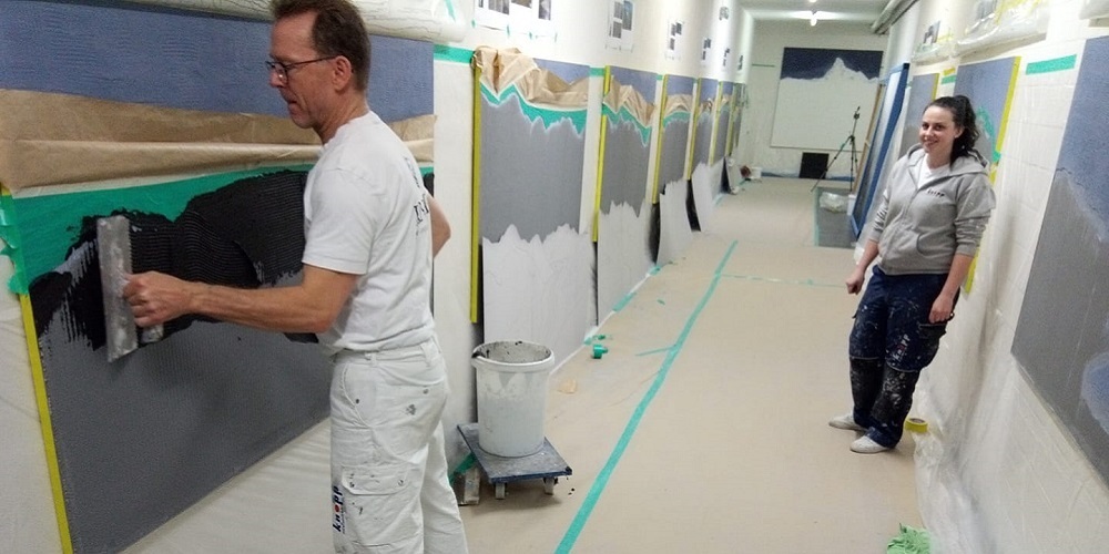 Ziegelschrot, Kalkstein, Betongranulat und Sandsteinpulver werden mit Sanden zu einer Spachtelmasse vermengt. In der Struktur widerspiegeln sie eine charaktervolle Gesteinsoptik an den Oberflächen der Wohnräume.