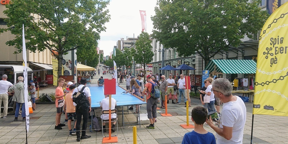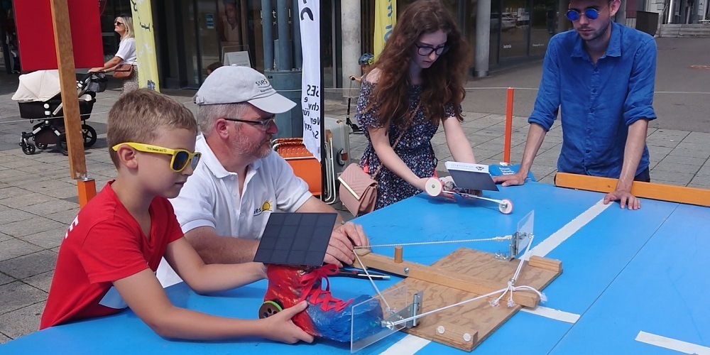 Das Thema Sonnenenergie sorgte am Samstag, 15. August, für viel Aufmerksamkeit in der Oberen Bahnhofstrasse, Wil. Das sonnige Wetter selber, der Solarcup Wil für selbstgebaute Mini-Solarmobile, Informationsstände, Test-Fahrzeuge und ein attraktiver Wettbewerb waren dafür verantwortlich. Weiter belebten am Samstag auch ein Stand der CVP Wil und musikalische Unterhaltung die Wiler Einkaufsmeile.