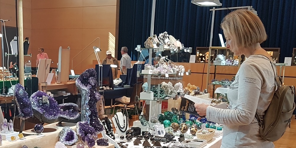 Neben Mineralien und Bergkristallen können auch Steinschmuck, Edelsteine und Fossilien bestaunt werden.