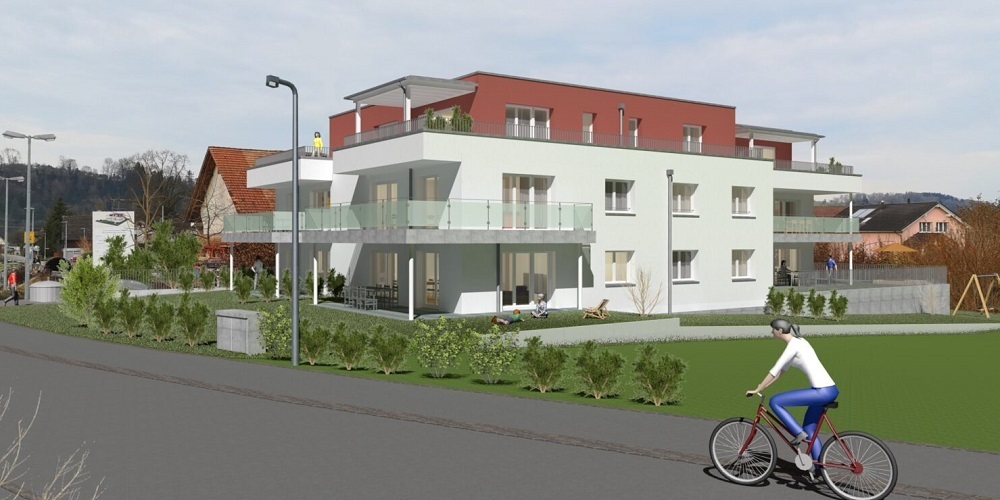 Im dreigeschossigen Mehrfamilienhaus entstehen drei 3 ½ Zimmer-Wohnungen, fünf 4 ½ Zimmer-Wohnungen sowie Lift, Keller, Bastelräume, eine eigene Tiefgarage und Aussenparkplätze.