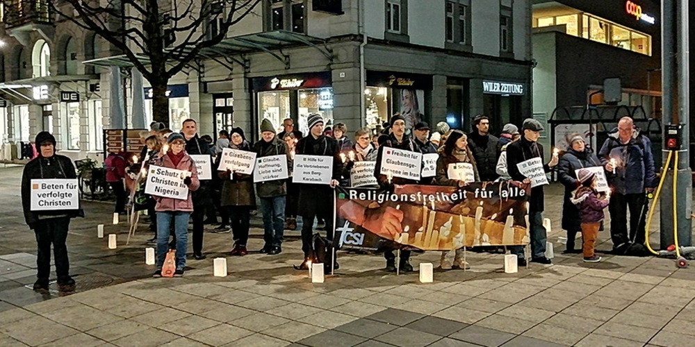 Die Mahnwache in Wil war Teil einer grösseren Aktion von «Christian Solidarity International» (CSI) und wurde von engagierten Freiwilligen vor Ort organisiert. Verantwortlich dafür war Anna Keller aus Flawil: «44 Personen bei der ersten Mahnwache in Wil, meine Freude ist gross. Teilgenommen hat auch ein syrisch-orthodoxer Pfarrer. Zum Abschluss hat er das <Unser Vater> auf aramäisch, der Sprache Jesus, gesungen. Das war sehr berührend!» Die CSI-Mahnwache fand gleichzeitig an 65 weiteren Schweizer Ortschaften mit total rund 2000 Personen statt.