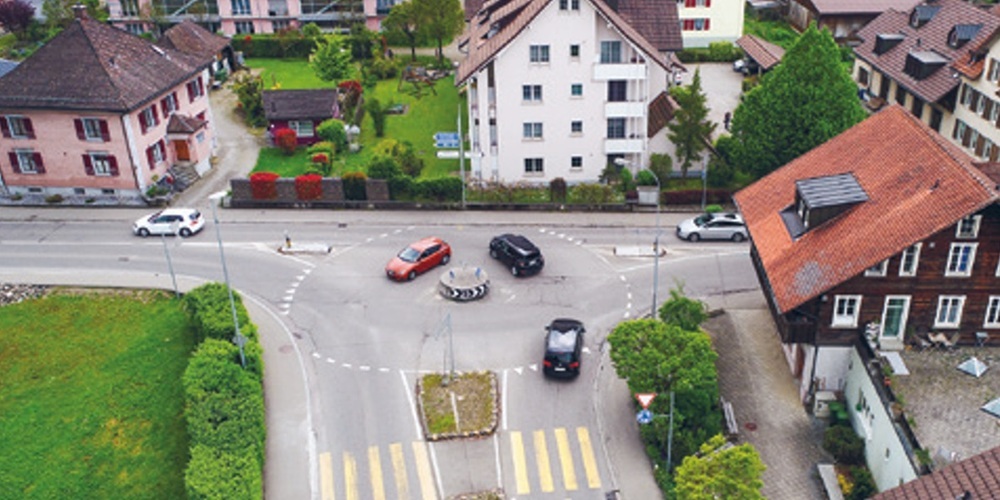 Das Projekt umfasst die Sanierung des bestehenden Kleinkreisels. Aufgrund der Geometrie und Verkehrsbelastung auf der Kantonsstrasse H468 wird der schadhafte Asphaltkreisel durch einen Betonkreisel mit lärmmindernder Waschbetonoberfläche ersetzt und umgebaut. Gleichzeitig mit den Strassenbauarbeiten werden durch die Gemeinde die Werkleitungen erneuert.