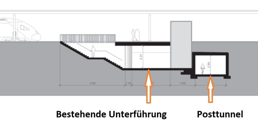 Im Rahmen der multimodalen Drehscheibe Bahnhof Wil ist die Stadtquerung Mitte (Zugang zu den Perrons und Fuss- und Veloverbindung Zentrum-Südquartier) sehr wichtig. Die täglich 600 bis 1‘000 Radfahrenden sind gemäss einer informellen Vereinbarung mit den SBB aus dem Jahr 2005 auf Zusehen hin geduldet. Mit dem Baubeginn des SBB-Umbauprojekts Bahnhof Wil ist der bis anhin geduldete Veloverkehr in der Personenunterführung Ost nicht mehr gestattet. Für die regionale Veloroute muss eine neue Lösung gefunden werden. Da diese Verbindung die einzige innerstädtische Nord-Süd Langsamverkehrsverbindung der Kategorie "Sicher" (Velostrategie Wil) darstellt, muss ein Ersatz geschaffen werden. Dieser wird mit Nutzung des Posttunnels sichergestellt.