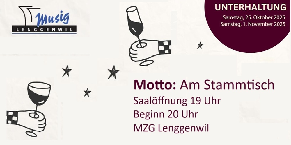 An beiden Abenden öffnet der Saal um 19:00 Uhr, Konzertbeginn ist um 20:00 Uhr. Der Eintritt zur Unterhaltung beträgt CHF 8.