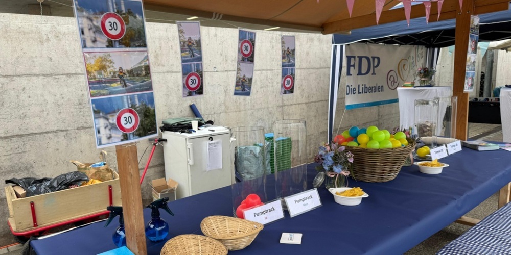 Im Sommer hat die FDP Zuzwil an der Dorfchilbi mit der Bevölkerung das Gespräch gesucht. Ziel war es, ein unverbindliches Stimmungsbild zu zwei Themen zu erhalten, die das Dorf derzeit beschäftigen: Tempo 30 in den Quartieren und der geplante Pumptrack. Dabei ist uns bewusst, dass die Gespräche an der Chilbi nur eine Momentaufnahme darstellen und nicht die Meinung der gesamten Bevölkerung widerspiegeln.