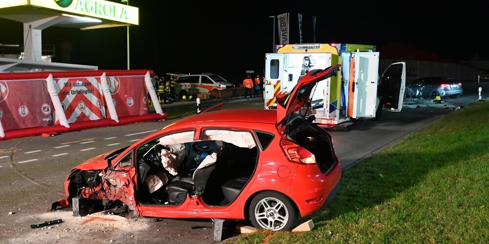 Am Freitag, 14. November 2025, kurz vor 21:45 Uhr ist es auf der Hauptstrasse zu einem Verkehrsunfall zwischen zwei Autos gekommen. Vier Personen wurden verletzt.