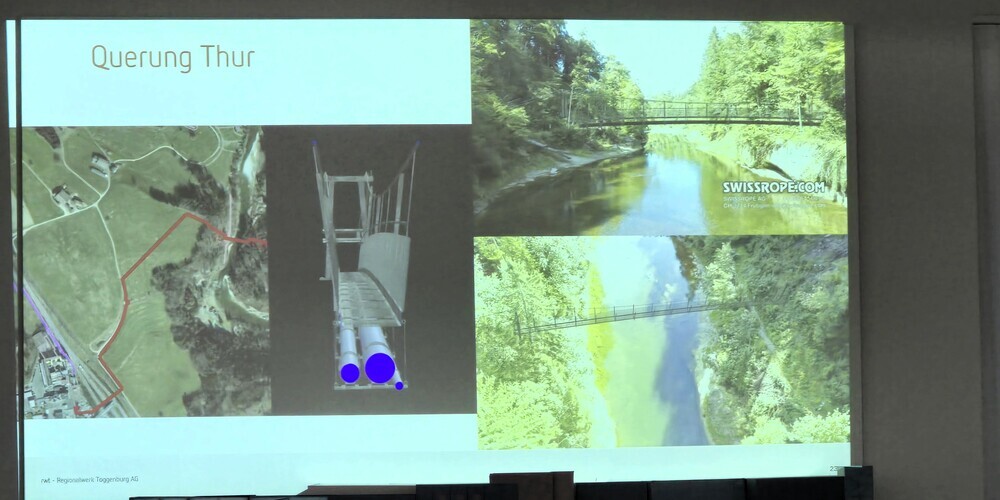 Als nächster wichtiger Schritt steht der Bau der Thurquerung im Frühling 2026 an. Diese wird nicht nur die Fernwärmeleitung und eine neue Wasserleitung aufnehmen, sondern zusätzlich als offiziell bewilligte Fussgänger- und Wanderverbindung dienen – künftig wohl die schnellste Verbindung zwischen Jonschwil und Bazenheid.
