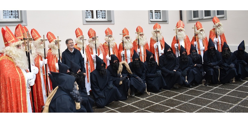 Stefan Giezendanner v/o Schück2 bedankte sich zudem im Namen aller Mitglieder der St. Nikolaus-Gruppe Wil bei der katholischen Kirche für die Unterstützung - und bei der Bevölkerung für den Rückhalt und die Einladungen in die Wiler Familienstuben. Schmutzli verteilte an den Ausgängen Biberli und die Gottesdienstbesucher wurden mit Glühwein und Punsch versorgt. Informell mischte sich Bischof Beat unter die Gläubigen und unterhielt sich in "seinem Wil" über aktuelle Themen.