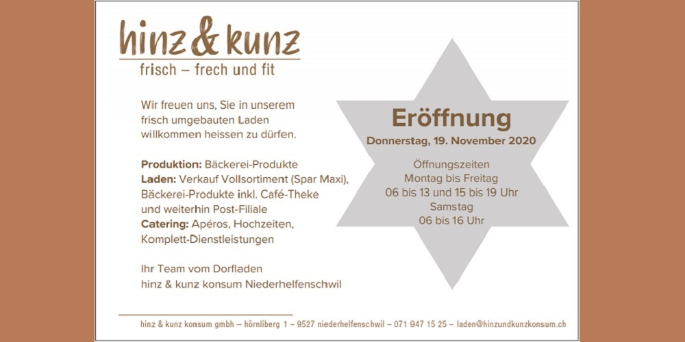 Unter dem neuen Namen „hinz & kunz“ wird inskünftig im Dorfladen alles an einem Standort angeboten. Dabei setzt „hinz & kunz“ zu einem grossen Teil auf Produkte aus der Region.