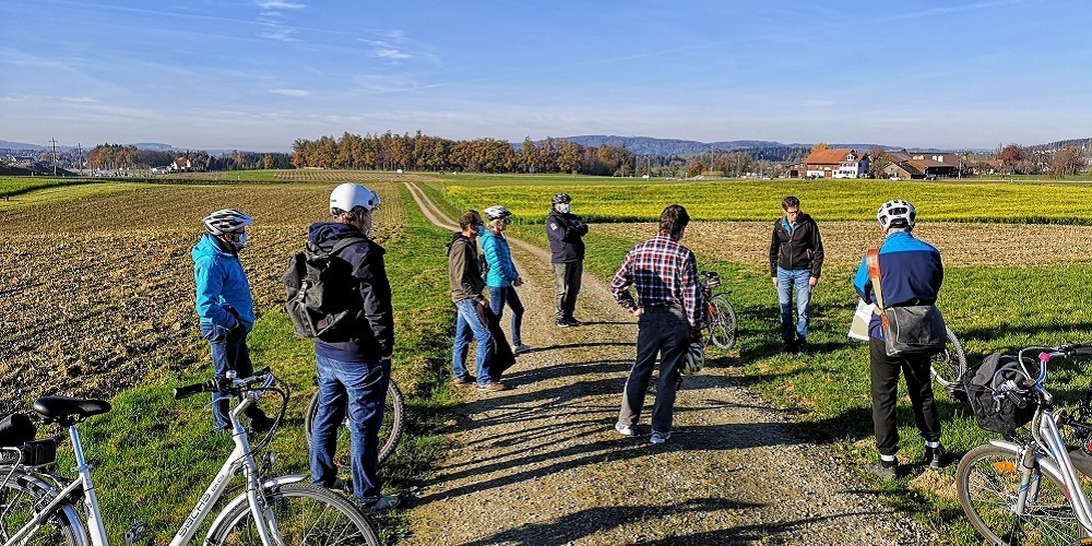 Zusammen wurden die Parteifreunde aus erster Hand von Projektleiter Peter Guler informiert. Per Velo wurden diverse Standorte des Areals angefahren, um eine Gesamtschau zu bekommen.