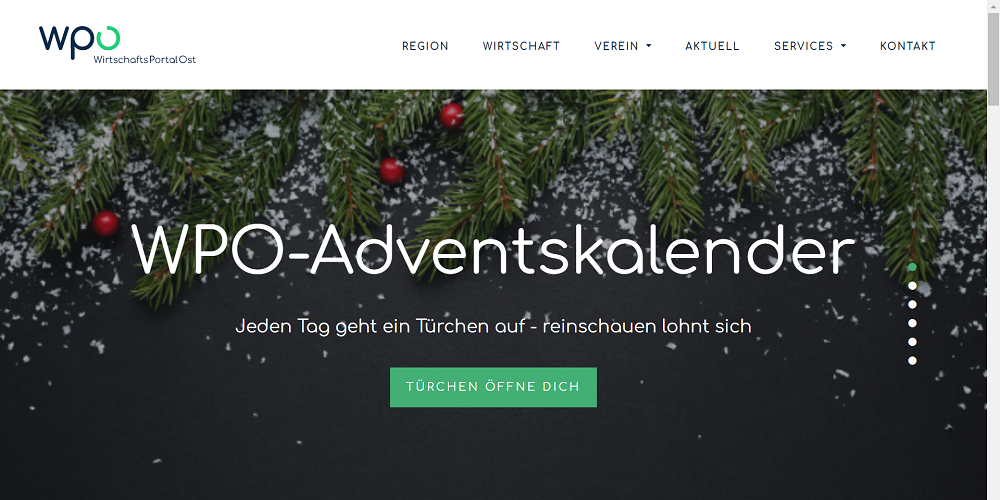 Das WirtschaftsPortalOst (WPO) musste aufgrund der zweiten Corona-Welle die geplanten Anlässe für November absagen. Es wäre die perfekte Gelegenheit für die WPO-Mitglieder gewesen, um sich auszutauschen, zu vernetzen und das eine oder andere spannende Gespräch zu führen. Damit das Netzwerken und Kennenlernen für dieses Jahr nicht ganz ausfällt, lanciert WPO einen Adventskalender.