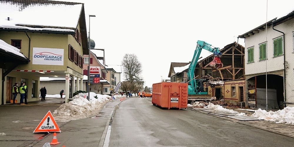 Aus Sicherheitsgründen wurde das eingestürzte Gebäude am Freitagnachmittag abgerissen. Zu diesem Zweck musste die Hauptstrasse ab 13:00 Uhr für den sämtlichen Verkehr gesperrt werden. Im Einsatz standen Angehörige der Kantonspolizei St.Gallen, der Gemeinde Oberbüren sowie der Feuerwehr Region Uzwil.