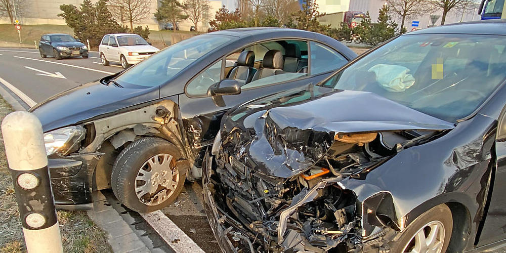 Bei der seitlich-frontalen Kollision wurden beide verletzt. Der Sachschaden an den Autos beträgt mehrere tausend Franken. Während der Unfallaufnahme musste der Verkehr umgeleitet werden.