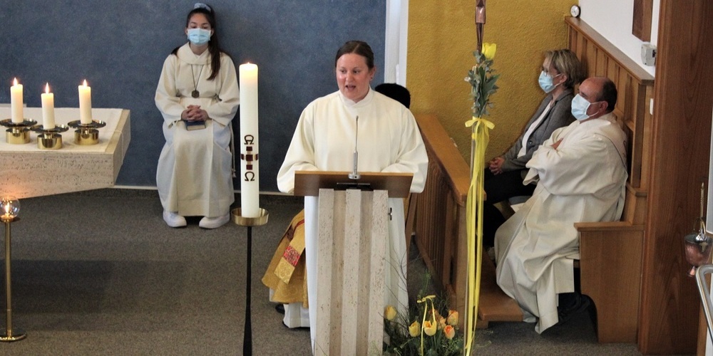 In ihrer Festpredigt erinnerte Katrin Blome an die zahlreichen Legenden, die sich um das Leben des heiligen Georg ranken. Als Kämpfer gegen den bösen Drachen wird er in der Kapelle auch mit einer Statue dargestellt. Vom realen Leben des heiligen Georg ist wenig bekannt. Er lebte im 3. Jahrhundert und war unter Kaiser Diokletian römischer Soldat und ranghoher Offizier. Er starb als Märtyrer, weil er seinen christlichen Glauben immer stärker bekannte und verteidigte. Die legendäre Symbolik als kämpferischer Held und Drachentöter gilt als ein Vorbild für Furchtlosigkeit und Tapferkeit. Georg zählt als einer der vierzehn Nothelfer zu den meistverehrten Heiligen. Katrin Blome erwähnte, dass er in Rom 1969 aus dem Heiligenkalender gestrichen und diese Entscheidung erst 1975 wieder rückgängig gemacht wurde. Am Schluss ihrer Predigt stellte Blome nochmals die Frage, ob das Leben mit all seinem Ungemach, Leid und Elend ein Kampf sei oder ob der gläubige Mensch wie der heilige Georg auf die Nähe und Kraft Gottes und seine Liebe vertrauen und das Beste aus dem Leben machen könne.