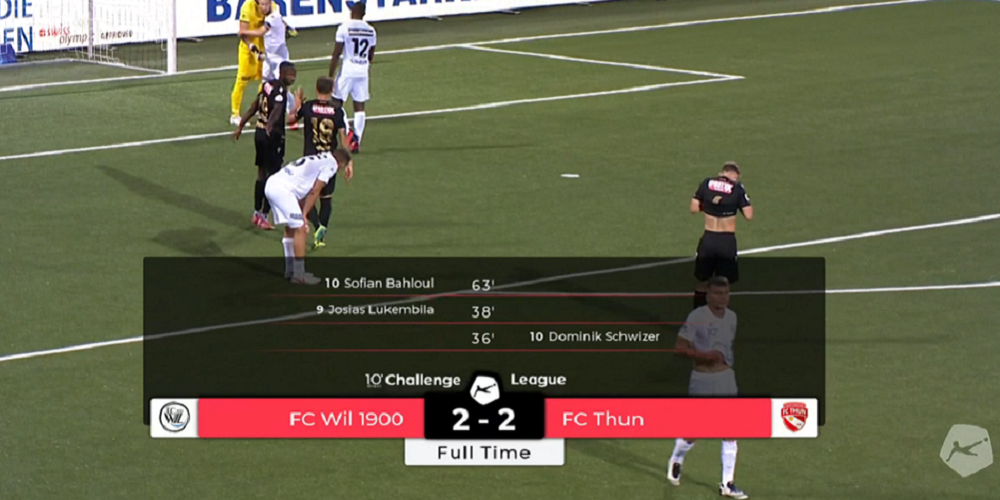 In der 36. Spielminute gingen die Berner Oberländer in Führung. Dominik Schwizer tänzelte dabei durch die Wiler Defensive und kam auch zum Abschluss, welcher FC Wil-Torhüter Marvin Keller zunächst abwehrte. Doch beim Nachschuss hatte er keine Abwehrmöglichkeit mehr.