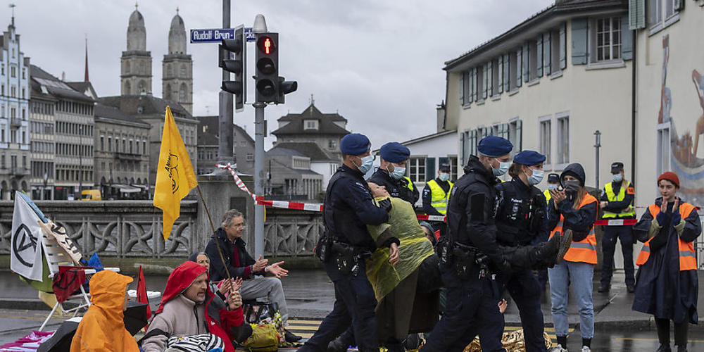 Bereits am Montagmittag hatten sich Mitglieder von "Extinction Rebellion" auf die Uraniastrasse gesetzt. Sie wollen mit dem Lahmlegen des Verkehrs den Bundesrat dazu bringen, die Klimakrise anzuerkennen und sofort Massnahmen zu ergreifen.