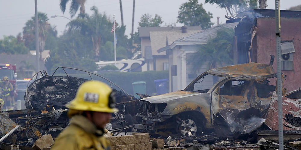 Auf Fotos war ein grosser Brand mit starker Rauchentwicklung zu sehen. Ein aus der Luft aufgenommenes Video von Einsatzkräften zeigte ein Trümmerfeld aus zwei zerstörten Häuser, Löschschaum und dem zerbrochenen Flugzeugwrack. Dutzende Menschen standen um den Unfallort herum. Eine Anwohnerin erzählte NBC 7, sie habe den Absturz gehört: "Es fühlte sich an, als ob jemand in meine Garage gestürzt wäre", sagte Lili Patch.