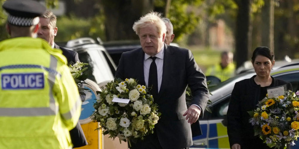 Premierminister Boris Johnson besuchte den Tatort in dem südostenglischen Küstenort Leigh-on-Sea am Samstag. Auf Fernsehbildern war zu sehen, wie der Premier und Konservativen-Parteichef einen Kranz an der Kirche niederlegte, die am Freitag zum Schauplatz des Messerangriffs auf Amess wurde. Begleitet wurde er vom Oppositionschef Keir Starmer von der Labour-Partei, der ebenfalls einen Kranz niederlegte. Anschliessend standen die beiden Politiker einige Zeit schweigend nebeneinander. Auch Innenministerin Priti Patel und Hoyle legten Kränze nieder. Patel hatte eine umgehende Überprüfung der Sicherheitsvorkehrungen für Abgeordnete angeordnet.
