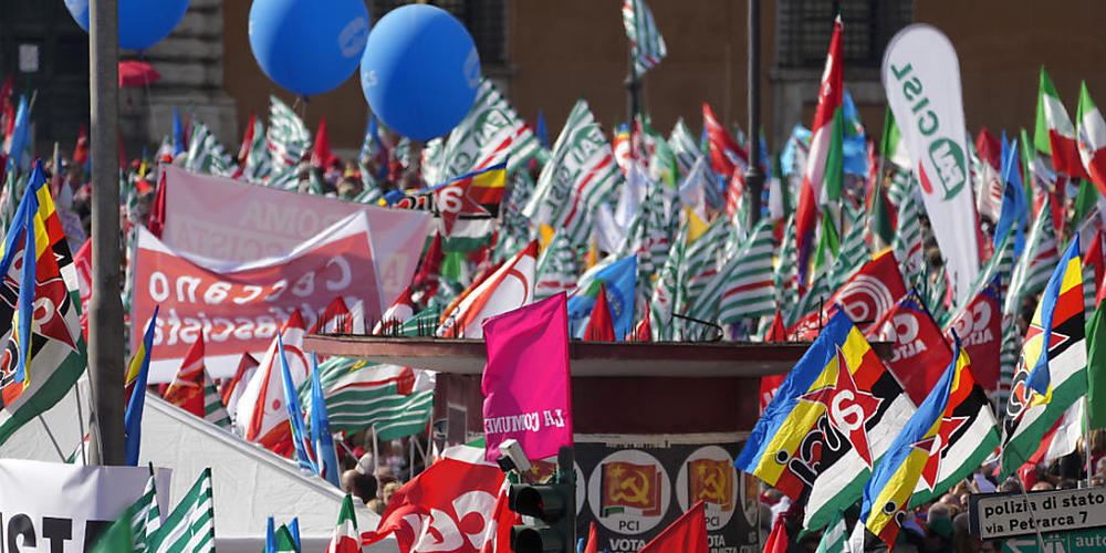 Nach Angaben der Gewerkschaften standen etwa 800 Busse und zehn Sonderzüge in ganz Italien bereit, um die Menschen in die Hauptstadt zu bringen. Mit Fahnen und Bannern zogen Tausende Gewerkschaftsanhänger und verschiedene linke Gruppen durch die Strassen um den Veranstaltungsort an der Piazza di San Giovanni in Laterano unweit des Kolosseums.