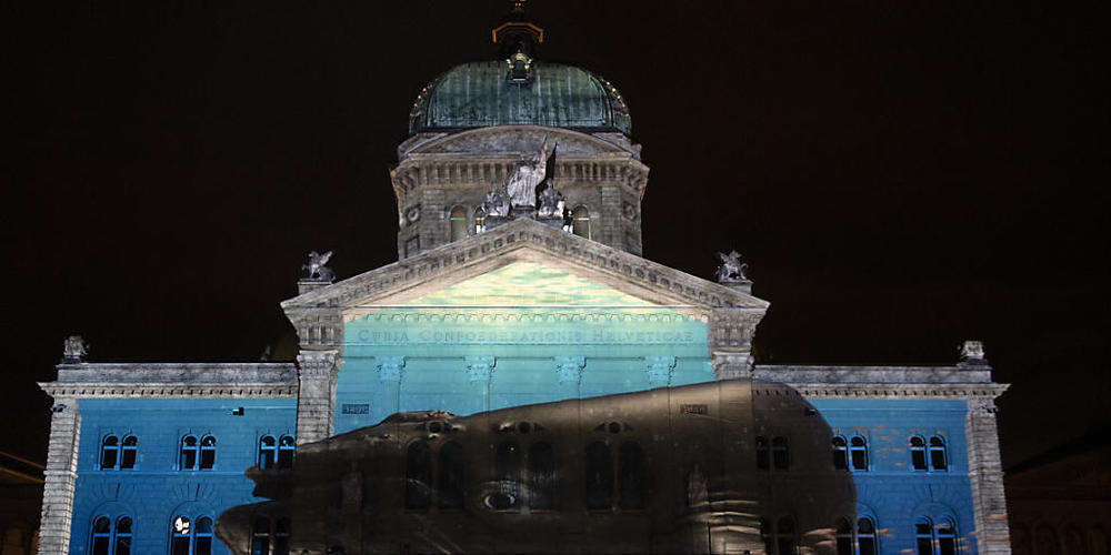 Bespielt wird die Fassade des Bundeshauses in bunten Farben des Regenwaldes. Sujets sind unter anderem ein von Plastikmüll bedrohter Ozean, ein schmelzender Gletscher und ein die Dunkelheit erhellender Leuchtturm.