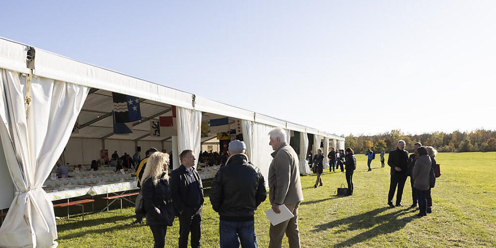 Parteipräsident Marco Chiesa begrüsste die 214 Delegierten in Montricher VD zu einer "besonderen" Delegiertenversammlung (DV) in einem offenen Zelt - ohne Zertifikatspflicht. Alle seien willkommen: "Geimpfte, Getestete, Genesene... und Gesunde! 4G statt 3G!"