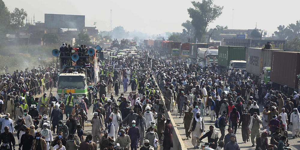 Tausende Anhänger der Tehreek-e Labbaik Pakistan (TLP) haben seit dem Beginn ihres Marsches in der Stadt Lahore im Osten des Landes mehr als 100 Kilometer zu Fuss, mit Autos, in Bussen und auf Motorrädern zurückgelegt. Zuletzt befanden sie sich in der Stadt Gujranwala.