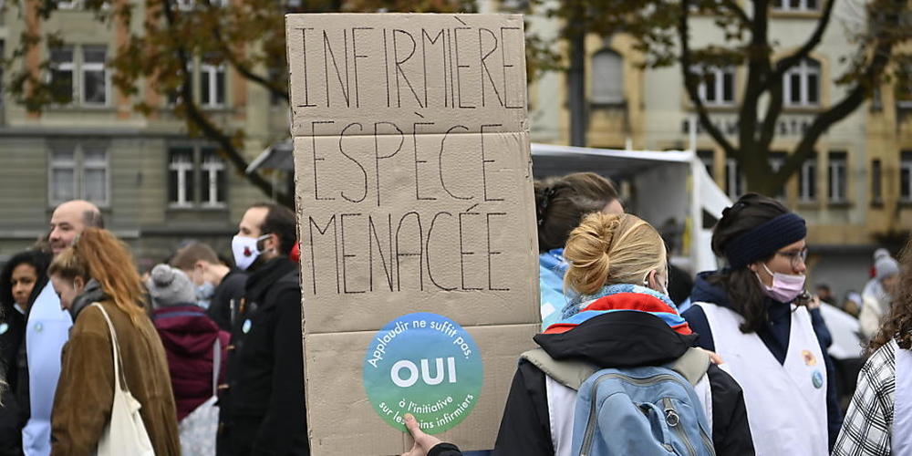 Im Rahmen der Kundgebung berichteten Gesundheitsfachfrauen aus allen Landesteilen, wie sie im Alltag den "Notstands" in der Pflege erlebten. Derzeit seien 11'000 Stellen in der Pflege unbesetzt, was zu enormen Druck und für die Patienten gefährlichem Qualitätsverlust führe.