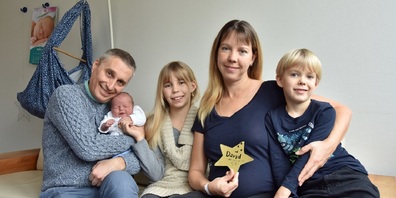 Das erste Kind, das im neuen Jahr im Spital Wil geboren wurde, heisst David. Er ist das dritte Kind der Familie Timokhin aus Jonschwil. Im Bild: Vater Slava mit dem kleinen David, ...